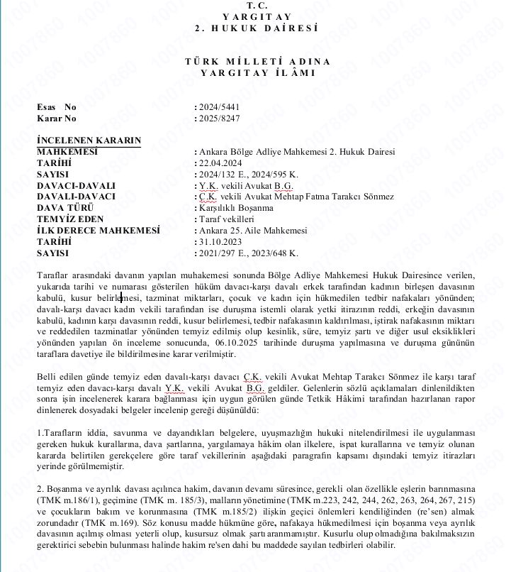Yargıtay 2. Hukuk Dairesi – Tedbir Nafakası