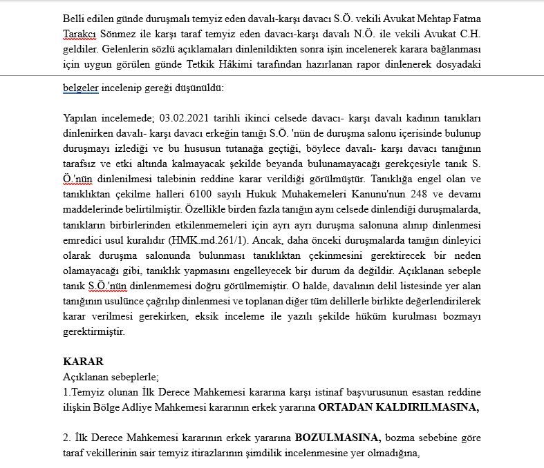 Daha önceki duruşmalarda tanığın dinleyici olarak duruşma salonunda bulunması, tanıklıktan çekinmesini gerektirecek bir neden olamaz.