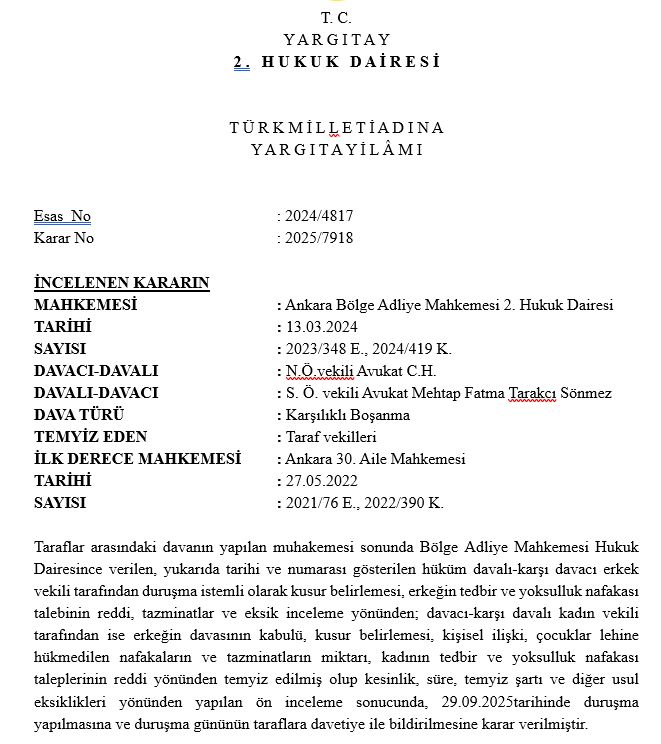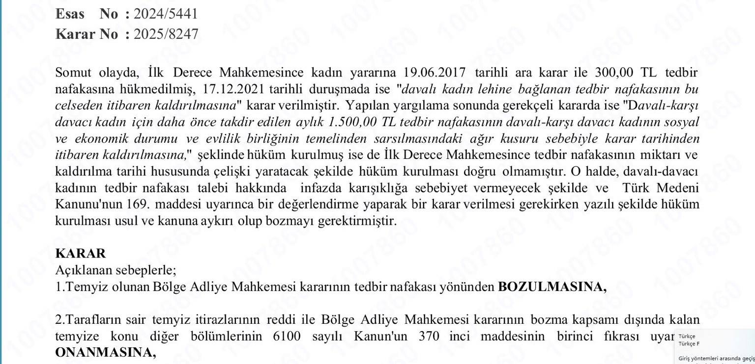 Yargıtay 2. Hukuk Dairesi – Tedbir Nafakası